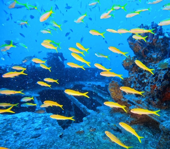 Erlebe den Nervenkitzel eines Nachttauchgangs und erkunde ein versunkenes Wrack. Beobachte nachtaktive Meeresbewohner und erleuchte die unheimliche Schönheit des Wracks mit deiner Taucherlampe.