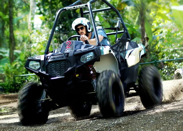Fahre mit einem hochwertigen ATV-Dschungelbuggy in den Dschungel von Bali und erlebe ein intensives Fahrerlebnis auf einem neuen Kurs. Entspanne dich nach deiner Fahrt am Pool.