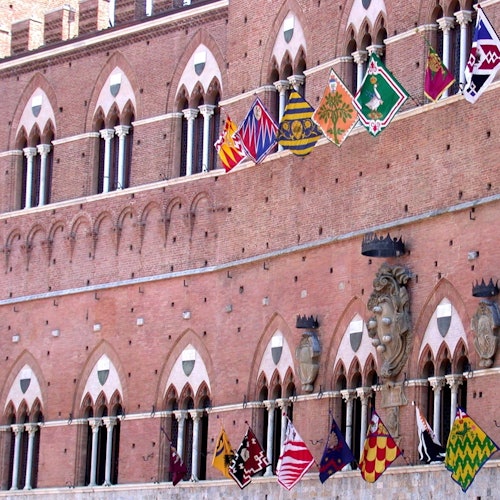 Siena ist eine berühmte mittelalterliche Stadt, die inmitten der sanften Hügel der Toskana eingebettet ist. Es ist ein Ort, an dem das Echo des mittelalterlichen Lebens noch immer in seinen gepflasterten Straßen widerhallt. Weltweit bekannt für das Pferderennen "Palio", dessen Ursprünge bis ins 13. Jahrhundert zurückreichen. Es ist eine festliche Tradition, die zweimal im Jahr, im Juli und August, gefeiert wird, und eine ganze Gemeinschaft, "le contrade", nimmt mit Hingabe und Zugehörigkeitsgefühl an der Veranstaltung teil.