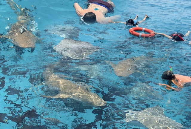Schwimm mit Ammenhaien, erkunde ein lebendiges Korallenriff und entspann dich auf dieser Schnorcheltour auf einer unberührten Sandbank. Genieße eine komfortable Schnellbootfahrt mit Annehmlichkeiten an Bord.