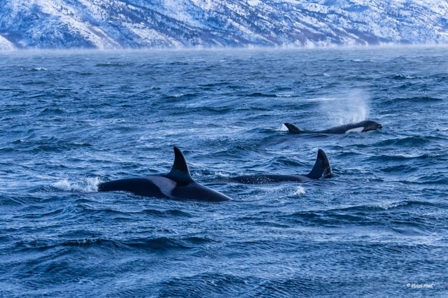 Erkunde die Schönheit der norwegischen Fjorde rund um Skjervøy und beobachte Orcas, Buckelwale und gelegentlich auch andere Walarten, die riesige Heringsschwärme jagen.