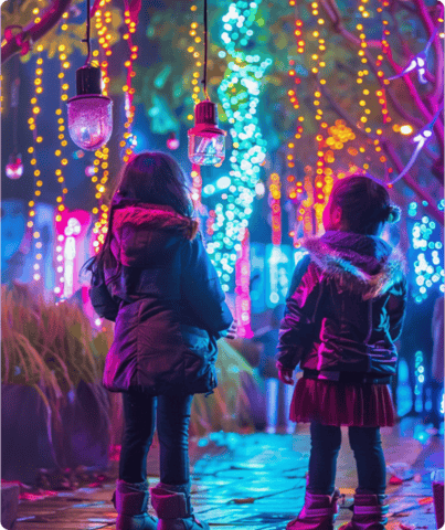Tritt ein in eine magische, leuchtende Welt, inspiriert von klassischen Märchen. Schlendere durch schillernde Lichtinstallationen und entdecke bezaubernde Themenzonen.