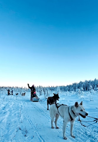 Experience the thrill of a husky sled ride through the snowy forest in Ruka. Meet the dogs, enjoy a cozy campfire, an homemade sweet buns, coffee, and tea in a Lappish hut.