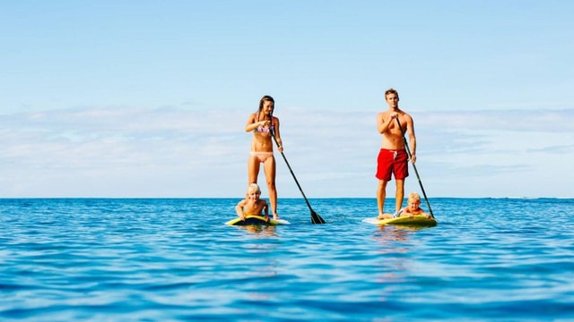 A full day on the beach with multiple water sports, and accessories like kayaking, paddle boarding, and snorkeling. Water floats and kick boards are also available.
