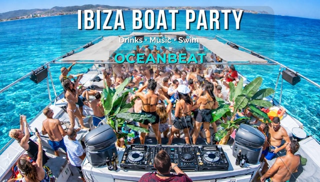 Oceanbeat Ibiza: la festa in barca all-inclusive originale dal 2010. Scegli tra 3 ore al tramonto o 6 ore nel pomeriggio e al tramonto. Percorso Ibiza-Formentera, vista su Es Vedrà e il tuo profumo migliore.