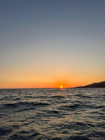 Erlebe den atemberaubenden Sonnenuntergang in Saranda bei einer entspannten Schnellbootfahrt entlang der ionischen Küste, wo leuchtende Farben den Himmel erfüllen. Genieße ruhige Momente und halte die herrliche Aussicht fest, während die Sonne untergeht.