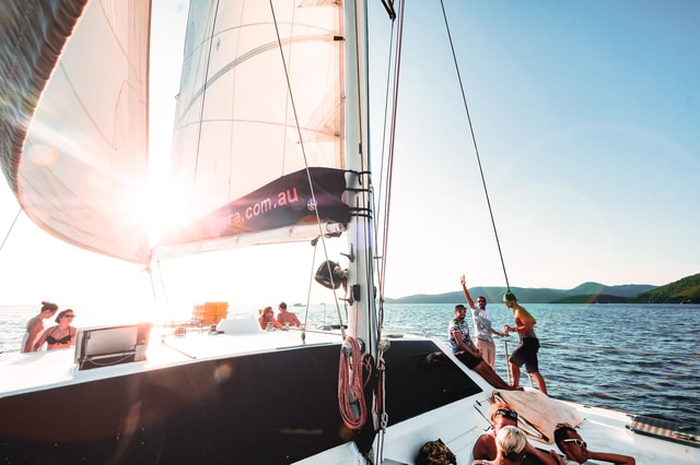 Segle zum weltberühmten Whitehaven Beach. Biete ein Mittagessen an, chille an Deck oder ziehe die Segel ein, besuche den Hill Inlet Lookout und schnorchle am Great Barrier Reef.