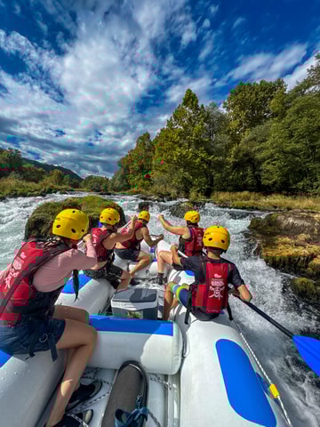 Erlebe mit Una Pirates aufregendes Rafting – ein Abenteuer mit Stromschnellen, Höhlen, kristallklarem Wasser, spektakulären Wasserfällen und Sprüngen von Brücken und Felsen.