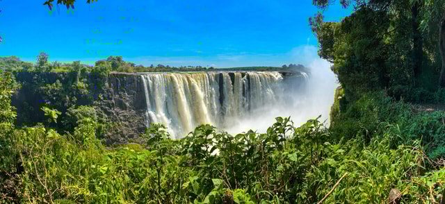 Tägliche Tagestour zu den Victoriafällen von Botswana nach Simbabwe. Genieße einen geführten Rundgang mit einem ortskundigen Guide zu den weltberühmten Victoriafällen, einem wahrhaft atemberaubenden Naturwunder.