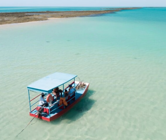 Entdecke die natürliche Schönheit von Maragogi bei einer Bootstour zum Croas de São Bento. Spaziere auf Sandbänken, schwimme im kristallklaren Wasser und besuche die Werkstatt Broas de Maragogi.