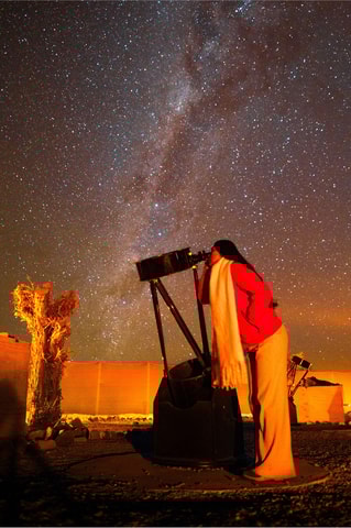 Auf dieser geführten Tour ab San Pedro de Atacama kannst du in der Atacama-Wüste, einem der besten Orte der Welt, um den Nachthimmel zu beobachten, die Sterne beobachten. Schaue durch Teleskope und bewundere Planeten und Sterne