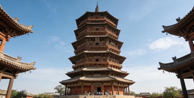Machen Sie eine private Tagestour zu zwei Hauptattraktionen in Datong: der Yingxian-Holzpagode und dem Hengshan-Hängetempel.