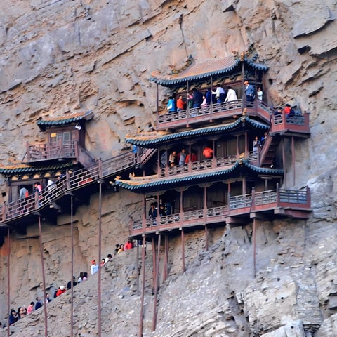 Erkunde den hängenden Tempel und die hölzerne Pagode in deinem eigenen Tempo!