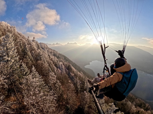 See von Annecy: Winterlicher Gleitschirmflug