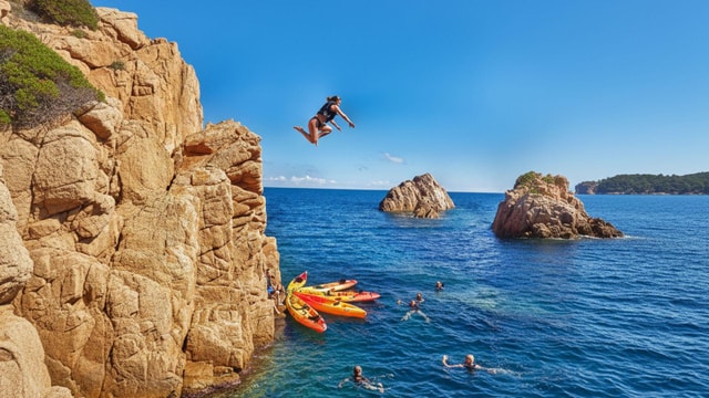 Begeben Sie sich auf ein unvergessliches Abenteuer zwischen Land und Meer, entdecken Sie die spektakulären Landschaften von Cap Dramont und tauchen Sie bei Sonnenuntergang in kristallklares Wasser ein.