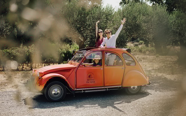 Nehmen Sie sich die Zeit, sich umzusehen, verbringen Sie einen unvergesslichen halben Tag damit, die Weinberge des Golfs von Saint-Tropez zu entdecken, wobei Sie die meiste Zeit des Jahres Ihr Dach geöffnet haben und dem sanften Motor eines dieser typisch französischen Autos lauschen, während wir zu unserem ersten fahren Weingut.