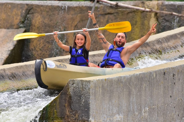 Die Familien-Fun-Tour mit 3 Rutschen, 3 Stromschnellen und einer Passage unter der Pont d'Arc.