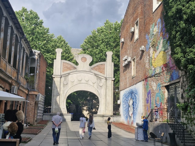 Wir beginnen an den ikonischen weißen Säulen in der Nähe des Meskhishvili-Theaters und schlendern die historische Rustaveli-Straße entlang bis zur malerischen Weißen Brücke. Genießen Sie unterwegs eine frische georgische Brezel aus einer lokalen Bäckerei – ein köstlicher Einblick in den Alltag.