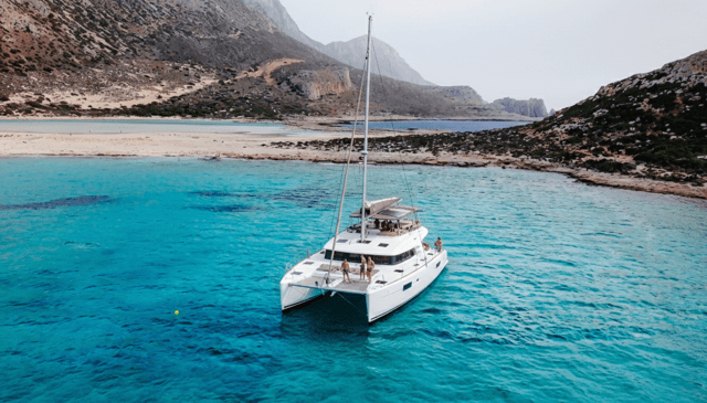 Segle auf einem modernen und luxuriösen Segelkatamaran! Entdecke die aufregende Insel Gramvousa und schwimme im kristallklarsten Wasser der Welt der legendären Lagune Balos.