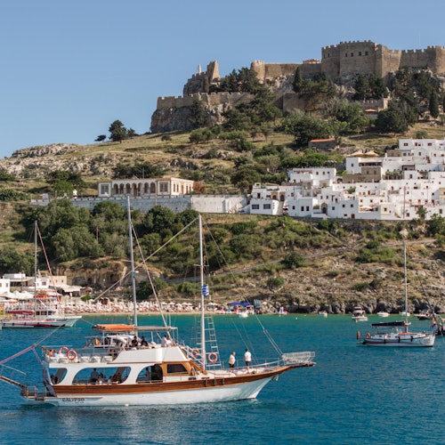Gehen Sie an Bord einer Bootstour, um beliebte Attraktionen der Insel Rhodos zu erkunden!