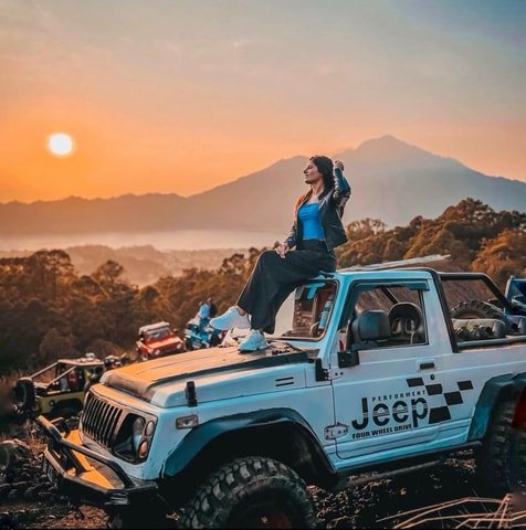 Erkunde die Schönheit des Mount Batur auf einer privaten Tour in einem 4WD-Jeep und besuche die natürlichen heißen Quellen zu einer anderen Tageszeit und bei Sonnenuntergang, damit du nicht früh aufstehen und dein Mittagessen ausfallen lassen musst.