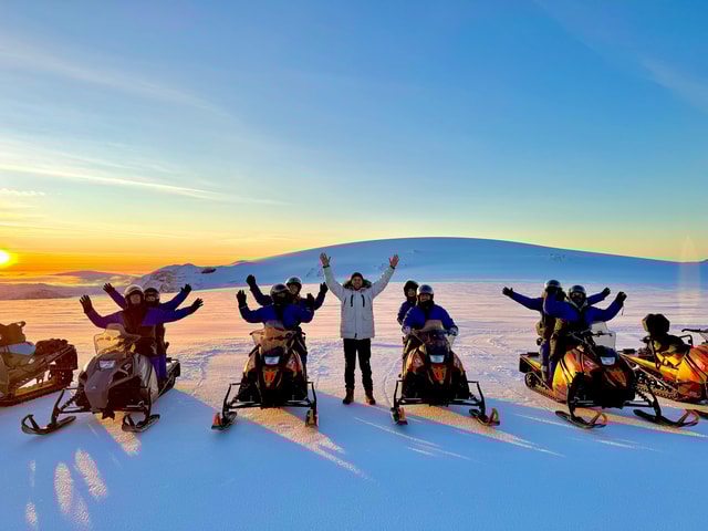 Erlebe den Nervenkitzel beim Schneemobilfahren auf dem Langjökull-Gletscher. Zieh dich in Husafell an, fahr zum Gletscher und genieß ein geführtes Abenteuer mit Fotomöglichkeiten.