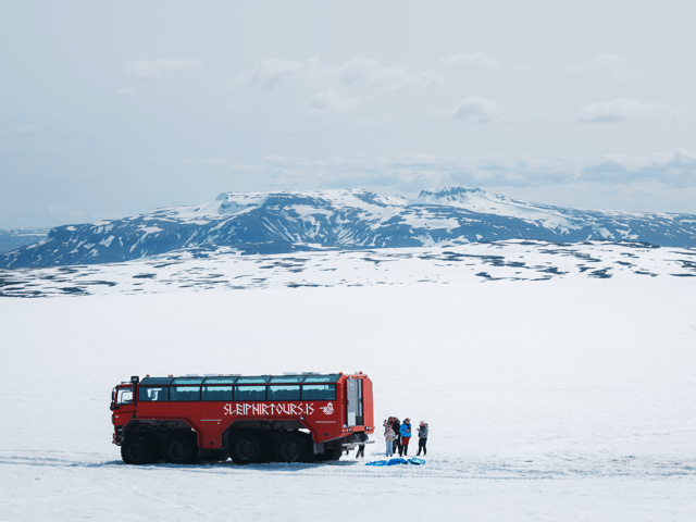 Begib dich mit dem Red Monster Glacier Truck auf ein Abenteuer auf dem Langjökull-Gletscher. Erkunde und lerne etwas über isländische Gletscher, höre einheimische Musik, genieße ein warmes Getränk und einen traditionellen Snack und vieles mehr.