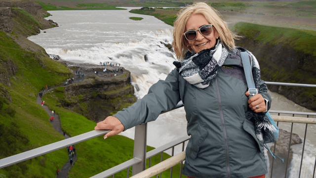 • Stehen Sie an den Gullfoss-Wasserfällen neben einem mächtigen Wasserfall und sehen Sie zu, wie er in eine enge Schlucht hinunterdonnert.