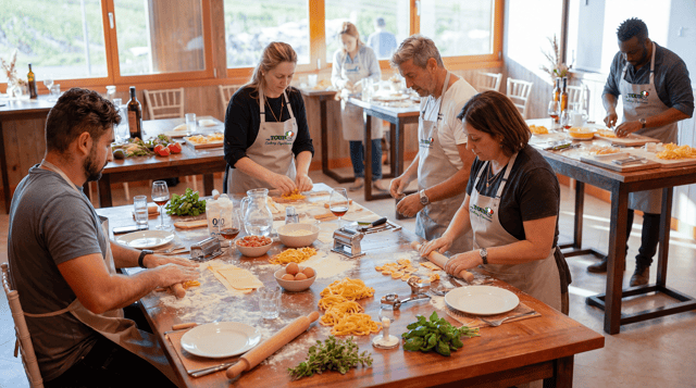Während des Unterrichts verrät die Cesarina die Tricks des Handwerks von 3 authentischen regionalen Rezepten. Viel Spaß beim Testen Ihrer Kochkünste. Jeder Teilnehmer erhält einen Arbeitsplatz, der mit Utensilien und allen Zutaten für die Zubereitung der Gerichte ausgestattet ist. Probieren Sie dann alles, was Sie zubereitet haben, begleitet von einer Auswahl an lokalen Rot- und Weißweinen.