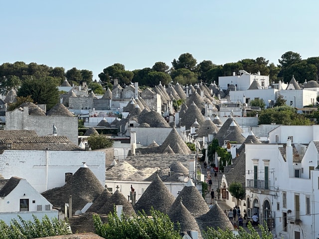 Entdecke die einzigartigen Trulli-Häuser von Alberobello, einer UNESCO-Welterbestätte, auf einer privaten Tour ab Bari. Erkunde das charmante Hügelstädtchen Locorotondo und die barocke Pracht von Martina Franca