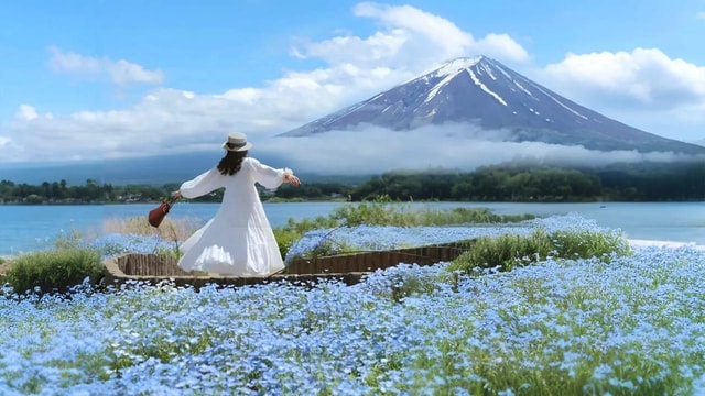 Entdecke Japans atemberaubendste Frühlingsfarben auf einer Tagestour ab Tokio, besuche die blauen Nemophila-Hügel, probiere die berühmten Gyoza und lass dich in den berühmten Blumenparks von den herabfallenden, violetten Glyzinien verzaubern.