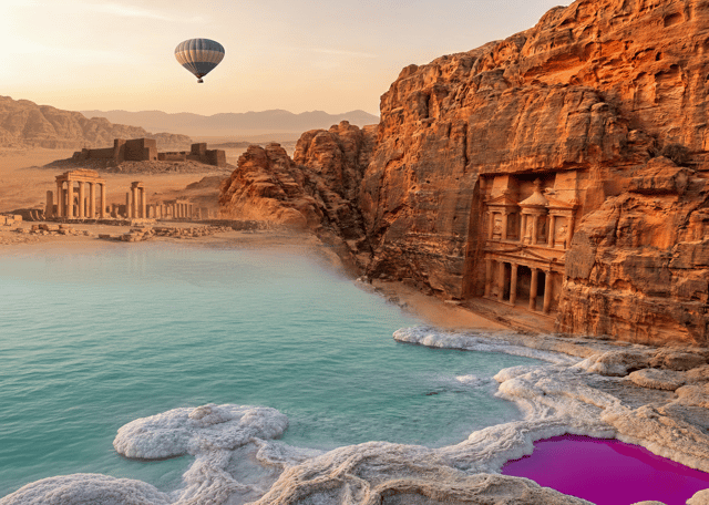 3-tägige private Jordanien-Tour: Amman, Madaba, Berg Nebo, Petra und Wadi Rum. Mit Stopp am beliebten Pink Lake und einem Bad im Toten Meer. Wähle All-Inclusive, Unterkunft und Transfer oder nur Transfer.