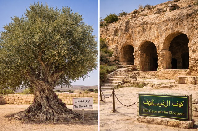 Besuche die Höhle der Sieben Schläfer und wähle aus: dem Gesegneten Baum, den Drei Schreinen (Youshaa, Ayoub, Shoayeb) oder den Moscheen von Amman: König Abdullah, Al-Husseini und Abu Darwish.