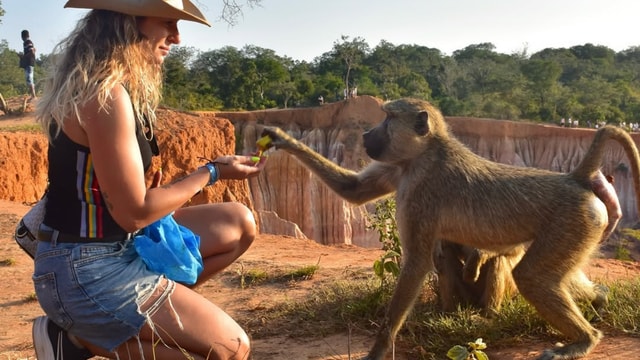 Entfliehen Sie ins Paradies und in feurige Landschaften! Erkunden Sie Robinson Island und das majestätische Marafa Hell's Kitchen auf einem individuellen Tagesausflug mit Destinazione Kenya. Schwimmen, entspannen und ein köstliches Mittagessen genießen (nicht inbegriffen bei den Nachmittagstouren in Marafa). Buchen Sie jetzt für ein unvergessliches Abenteuer! Wenn Sie nur Marafa Hell's Kitchen buchen, erleben Sie den Sonnenuntergang über der spektakulären Erosionslandschaft. Der Tür-zu-Tür-Transport von Hotels macht dies zu einer bequemen Möglichkeit, Malindis faszinierende Kultur und Natur zu erleben, und die Tour beinhaltet eine geführte Sonnenuntergangswanderung durch die Marafa-Hells Kitchen-Schlucht. Kaufen Sie lokale Produkte auf dem historischen Markt. Sehen Sie malindianischen Handwerkern beim Erstellen von Holzschnitzereien zu. Erfahren Sie die Legende hinter dem Sonnenuntergang in Marafa-Hells Kitchen.