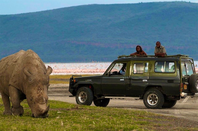 Genieße eine Ganztagestour von Nairobi aus mit einer morgendlichen Pirschfahrt im Nakuru-Nationalpark und einer optionalen Bootsfahrt auf dem Naivasha-See am Nachmittag, bei der du leuchtende Schwärme von rosa Flamingos, Nashörner usw. sehen kannst.