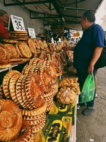 Erlebe die authentischen Aromen Kirgisistans bei einer geführten Foodtour in Bischkek. Genieße eine Mahlzeit in einem Restaurant im Jurtenstil, erkunde den Ala-Too-Platz und probiere lokale Süßigkeiten in einem charmanten Café.