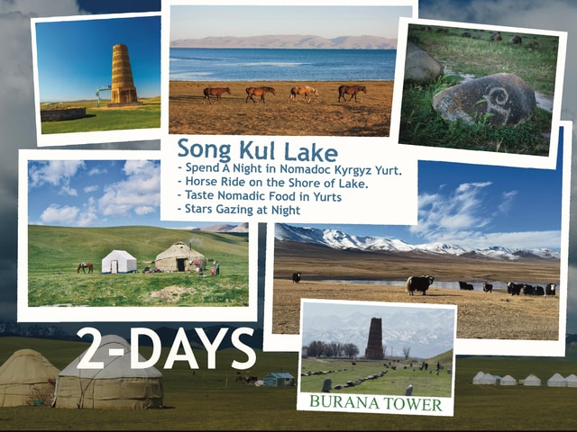 Entdecke das versteckte Juwel des Son-Kul-Sees auf einer 2-tägigen Tour ab Bischkek. Besuche das alte Minarett von Burana, reite auf einem Pferd durch die Berge und übernachte in einer traditionellen Jurte.