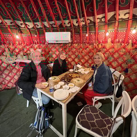 Erlebe die authentischen Aromen Kirgisistans bei einer geführten Foodtour in Bischkek. Genieße eine Mahlzeit in einem Restaurant im Jurtenstil, erkunde den Ala-Too-Platz und probiere lokale Süßigkeiten in einem charmanten Café.