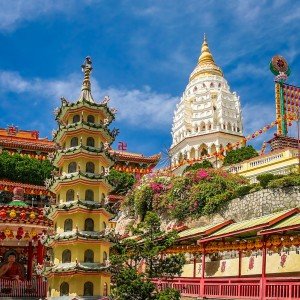 Besuchen Sie den größten buddhistischen Tempel Südostasiens, den Kek Lok Si-Tempel, und erklimmen Sie den höchsten Gipfel Penangs, um George Town und das Festland von oben zu bewundern.