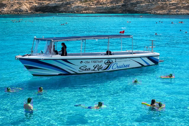 Genieße eine Kreuzfahrt von Sliema zur Insel Comino. Das Boot fährt um 10:30 Uhr ab und kommt um 18:30 Uhr zurück.