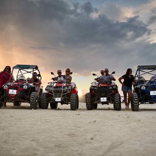 Fahren Sie mit einem Buggy und machen Sie eine Tour entlang der Küste der Insel bei Sonnenuntergang