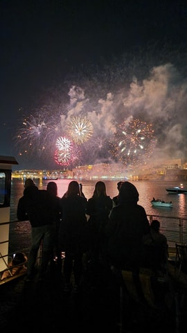 Erlebe Maltas internationales Feuerwerksfestival vom Meer aus, während du in den Grand Harbour fährst und dort ankert, um einen atemberaubenden Blick auf die spektakuläre Show über Valletta zu genießen.