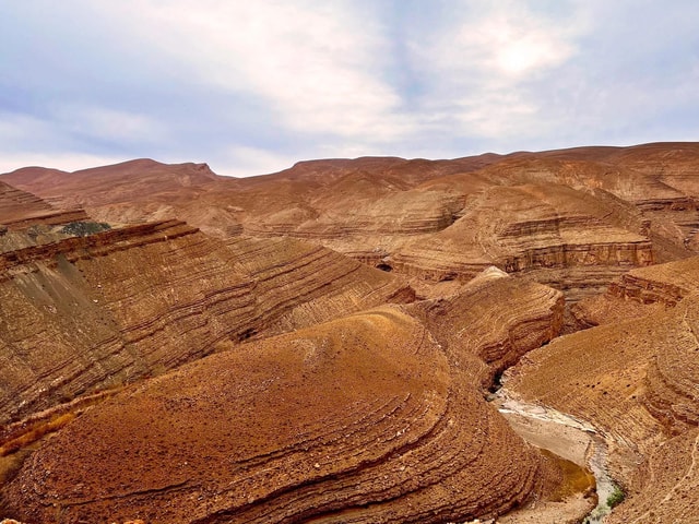 Diese 7 - 10 Kilometer lange Wanderung bietet eine einzigartige Mischung aus Abenteuer, atemberaubenden Landschaften und kulturellen Eintauchen. Ab Auberge Kasbah Ait Merghad empfängt Sie Ihr Fortgeschrittener mit einem Wanderbriefing und einer Flasche Wasser. Die Reise beginnt mit einem Abstieg zum Fluss Dades, wo Sie etwas über traditionelle Landwirtschaft, Bewässerungssysteme und lokale Pflanzen erfahren. Ein 30-minütiger Spaziergang durch das üppige Tal der Rosen und Feigenbäume führt zum atemberaubenden Dades Canyon, wo Sie 1,5 Stunden Canyoning inmitten von hoch aufragenden Sandsteinfelsen und einzigartigen Felsformationen verbringen.