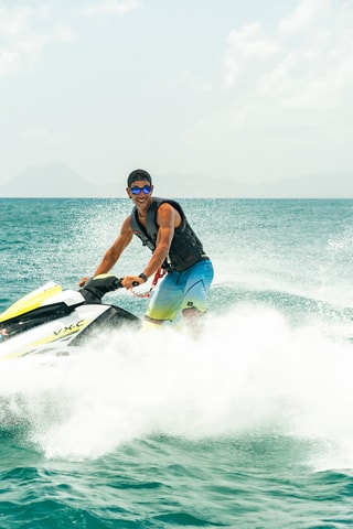 Erlebe den Adrenalinkick einer Jetski-Tour auf dem türkisfarbenen Wasser von Martinique, begleitet von einem erfahrenen Instruktor. Erkunde atemberaubende Landschaften zwischen Stränden und Nervenkitzel