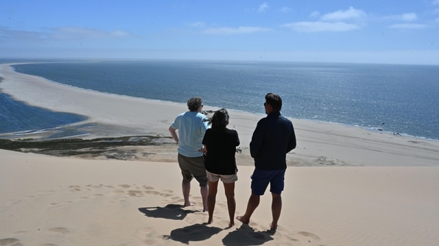 Entdecke eine einzigartige Landschaft mit riesigen Sanddünen, die direkt in den Ozean münden. Erkunde die Dünen mit dem Geländewagen und erfahre mehr über die Lebewesen, die in dieser rauen Umgebung leben und gedeihen.