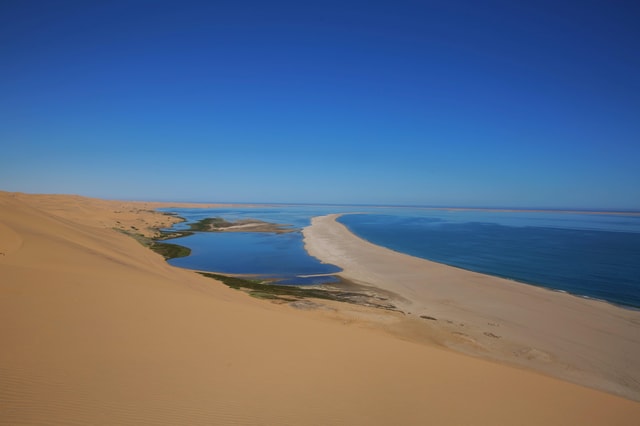 Entdecke eine einzigartige Landschaft mit riesigen Sanddünen, die direkt in den Ozean münden. Erkunde die Dünen mit dem Geländewagen und erfahre mehr über die Lebewesen, die in dieser rauen Umgebung leben und gedeihen.