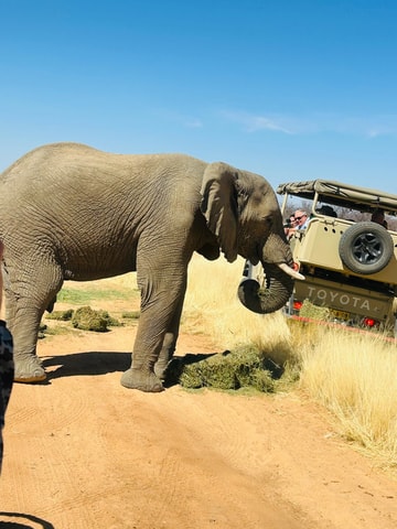 Genieße eine geführte Safari in Etosha in einem offenen Geländewagen. Entdecke mit einem professionellen Guide Elefanten, Löwen und mehr in einer authentischen und sicheren Umgebung – ein unvergessliches Wildtiererlebnis in Namibia.