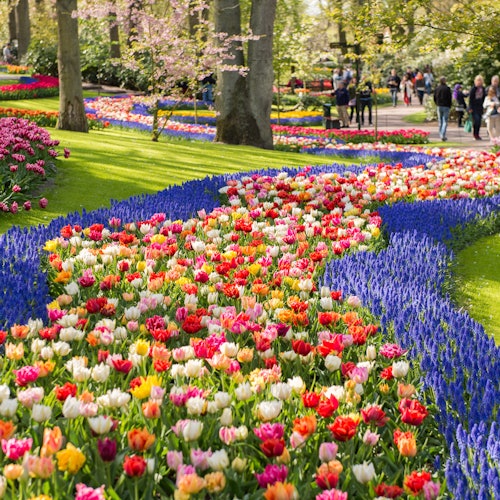 Entdecke auf dieser Tagestour von Brüssel in die Niederlande die farbenfrohen Tulpen des Keukenhofs und das zarte blaue Delfter Porzellan.