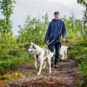 Sommerausflug: Erleben Sie die arktische Wildnis bei einer einzigartigen Wanderung mit Huskys. Die Möglichkeit zum Kuscheln der Huskywelpen sowie ein landestypisches Mittagessen mit lokalen Spezialitäten runden den Ausflug perfekt ab.