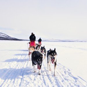 Winterausflug: Lehnen Sie sich entspannt zurück und lassen Sie sich von Huskys mit dem Schlitten quer durch die winterliche Landschaft Tromsøs ziehen. Ein Besuch der Husky-Farm, Kuscheleinheiten mit den Tieren und ein landestypisches Mittagessen runden das Erlebnis ab.